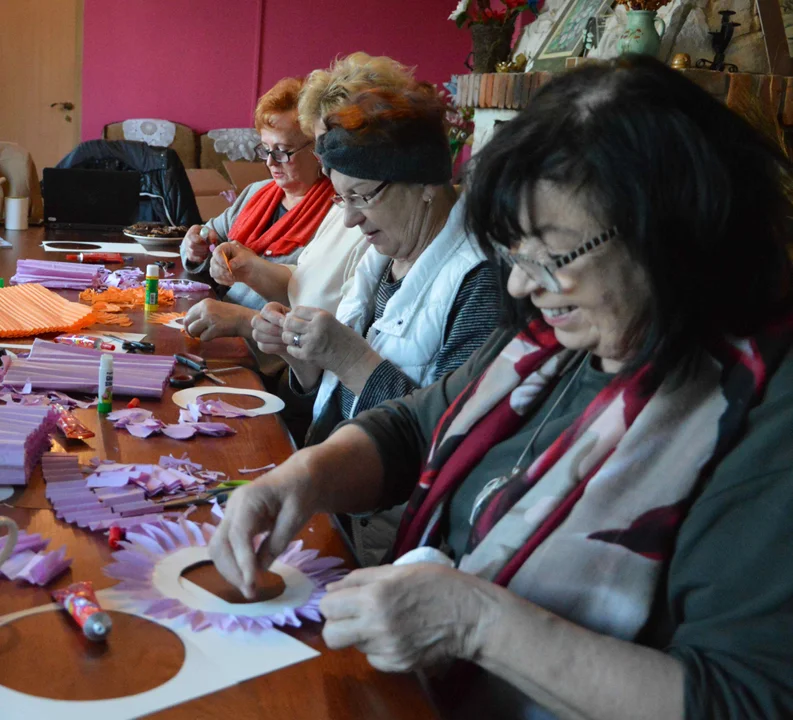 Pod okiem instruktorki Małgorzaty Król-Smagały seniorki z Celejowa dały nowe życie papierowi używanemu w szwalniach do plisowania odzieży, np. spódnic. Materiał, przy użyciu nożyczek, kleju, papieru i sznurka, pozwolił stworzyć unikatowe stroiki.