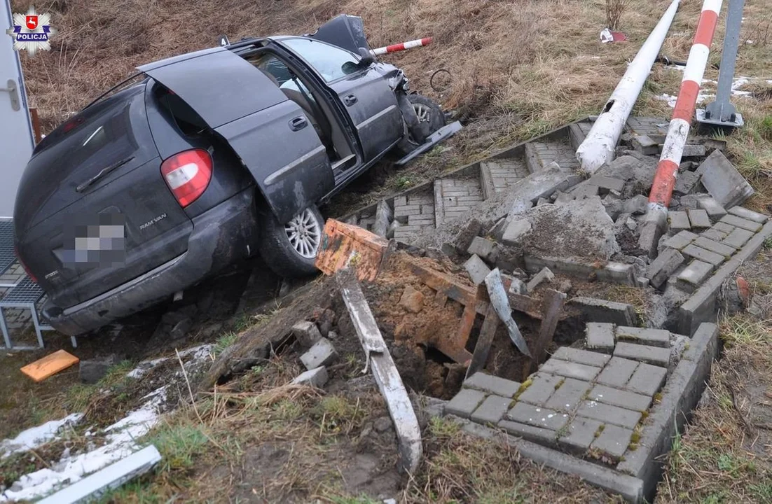 - Funkcjonariusze jadący za nim radiowozem z włączonymi sygnałami uprzywilejowania próbowali bezpiecznie spowodować zatrzymanie uciekającego, jednak kierowca nie reagował na działania policjantów. Jadący z bardzo dużą prędkością chrysler uderzył w tył znajdującego się przed przejazdem kolejowym samochodu marki Volvo. Następnie odbił się od niego i wpadł na rogatki przejazdu kolejowego i spadł do pobliskiego rowu. Mundurowi widzieli, że kierujący vana "wyskoczył” ze swojego auta i poprzez pobliskie zarośla i posesje pobiegł do lasu - informuje aspirant sztabowy Marcin Józwik z KPP w Łukowie.