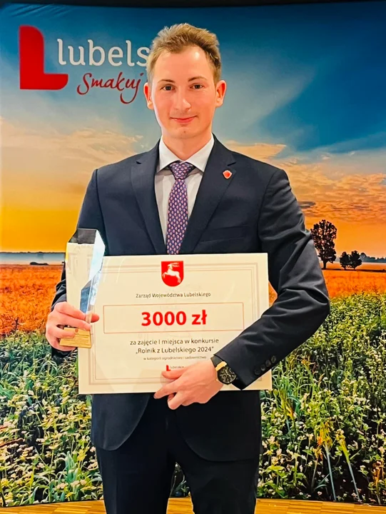 Autor: Farma Mój Owoc/Facebook | Opis: I miejsce w kategorii ogrodnictwo i sadownictwo w konkursie "Rolnik Lubelszczyzny" zajął Mateusz Maruszewski z gm. Baranów za uprawę truskawek i malin. Otrzymał nagrodę w wysokości 3000 zł. Nagrody otrzymali także inni przedstawiciele z powiatu puławskiego