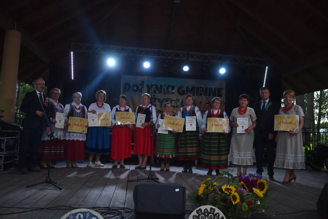 Część artystyczną otworzyły występy lokalnych grup i zespołów, które wprowadziły uczestników w ludowy klimat dożynek. Na scenie nie brakowało muzyki, śpiewu i tańca, a kolejne prezentacje były entuzjastycznie oklaskiwane przez publiczność. Nowością podczas dożynek był konkurs wiedzy o gminie. W teście wystartowało 4 drużyny. Rozstrzygnięto również konkurs na najpiękniejszy wieniec dożynkowy. W kategorii tradycyjnej bezapelacyjnie zwyciężyło Koło Gospodyń Wiejskich "Zagrody Razem", a w kategorii nowoczesnej KGW "Strażacy Razem" z Borysowa.