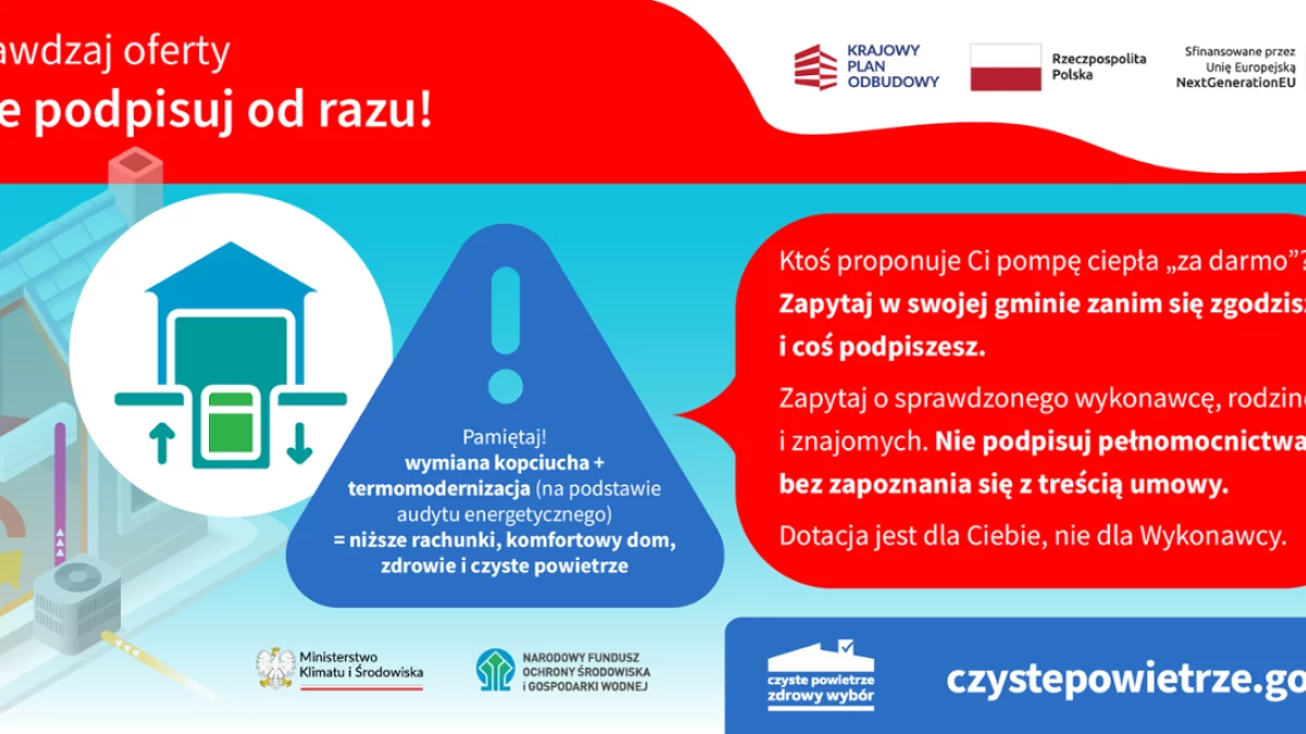 - Prosimy uważać na firmy, które zapraszają na zebrania i nakłaniają do współpracy, powołując się na partnerstwo Urzędu Gminy Janowiec w programie, a często także bezprawnie posługują się znakami graficznymi "Czystego Powietrza" czy instytucji zarządzających programem - ostrzegają urzędnicy z Janowca.