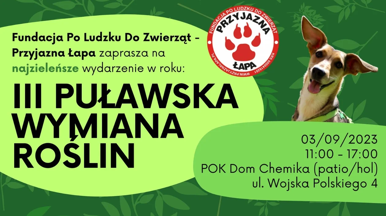 Podczas wydarzenia można zarówno wymienić rośliny, jak i je sprzedać. Będzie można również kupić wyjątkowe okazy. Dochód z wymiany roślin zostanie przeznaczony na Fundację Po Ludzku do Zwierząt.