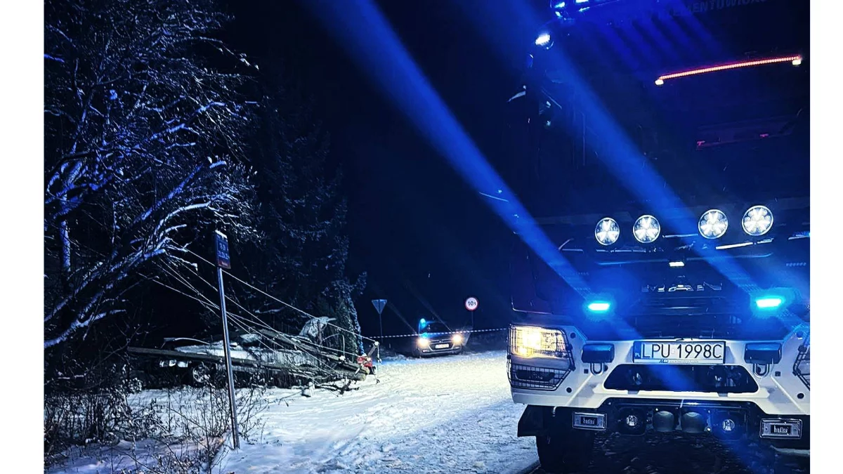 Zima potrafi zaskoczyć i kierowców i drogowców. I właśnie niedostosowanie prędkości do warunków panujących na drodze było przyczyną kolizji, do jakiej doszło w noc sylwestrową w Klementowicach w gminie Kurów. O godz. 00:29 służby dostały informację od świadka zdarzenia o tym, że osobówka zjechała z drogi i uderzyła w słup energetyczny.