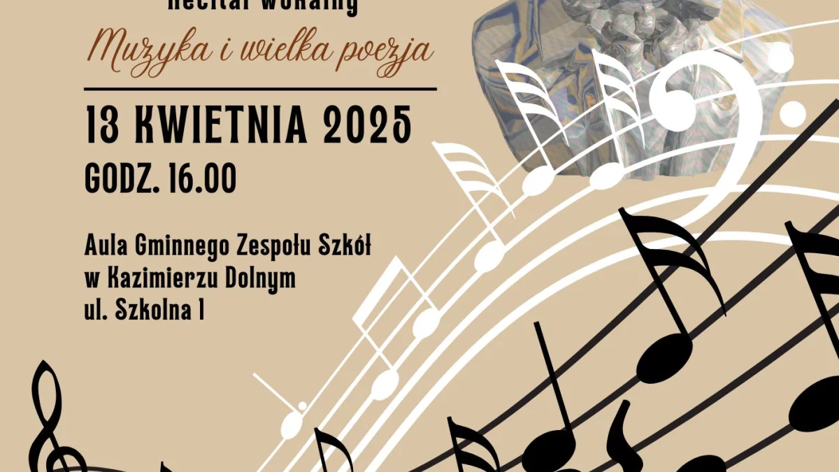 W niedzielę, 13 kwietnia o godzinie 16 w auli Gminnego Zespołu Szkół w Kazimierzu Dolnym odbędzie się specjalny koncert w ramach 29. Wielkanocnego Festiwalu Ludwiga van Beethovena pt. "Muzyka i wielka poezja".