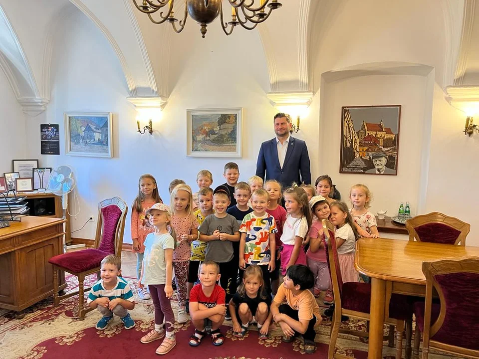 Nie obyło się oczywiście bez podarunków. Burmistrz Kazimierza Dolnego dostał w prezencie książeczkę składającą się z rysunków wykonanych przez dzieciaki.