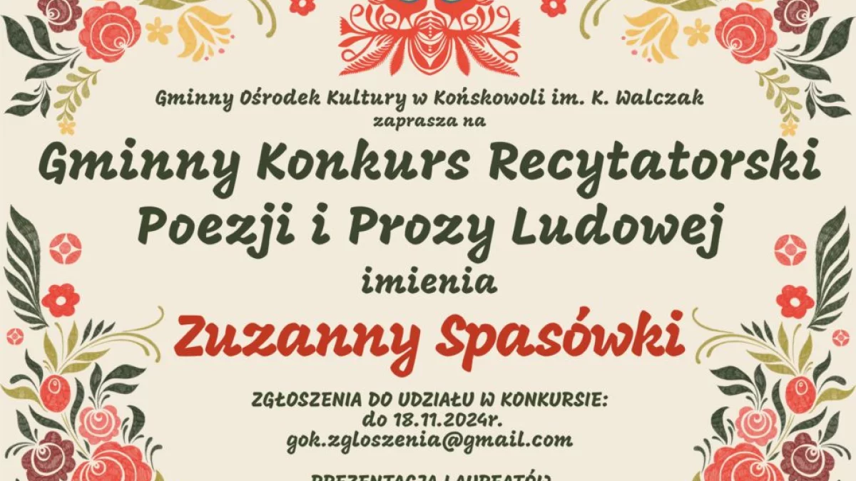 Zainteresowani udziałem w konkursie mogą zgłaszać się wysyłając e-mail na adres: gok.zgloszenia@gmail.com do 18 listopada. Na stronie Gminnego Ośrodka Kultury można znaleźć także pełny regulamin oraz plik z poezją, z którego można wybrać utwór do prezentacji. A tę organizatorzy zaplanowali już w najbliższy piątek o godz. 10:00 w siedzibie GOK (sala widowiskowa). Recytacji uczniów będzie przysłuchiwać się jury. Oceniając występy będzie brać pod uwagę dobór tekstów i dostosowanie do możliwości