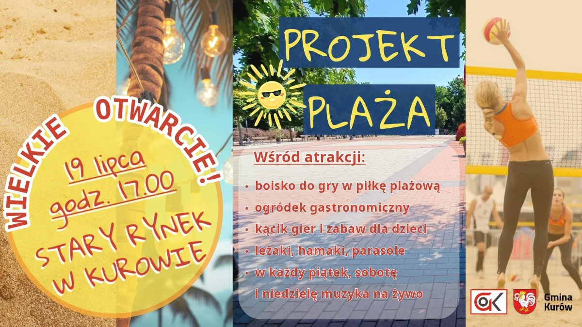 - Projekt Plaża w Kurowie to pierwsza tego typu inicjatywa w historii gminy. Zamieniamy pusty plac w miejsce tętniące życiem! Na niezagospodarowanym dotąd deptaku powstaje boisko do piłki plażowej, ogródek gastronomiczny, leżaki, parasole, kącik dla dzieci, a w każdy weekend zagramy muzykę na żywo! Cieszymy się, że inicjatywa na naszym profilu w mediach społecznościowych spotkała się z entuzjastycznym przyjęciem. Chcemy, by mieszkańcy gminy mieli nie tylko rozrywkę, ale też świadomość, że są ważną częścią społeczeństwa - mówią organizatorzy przedsięwzięcia.