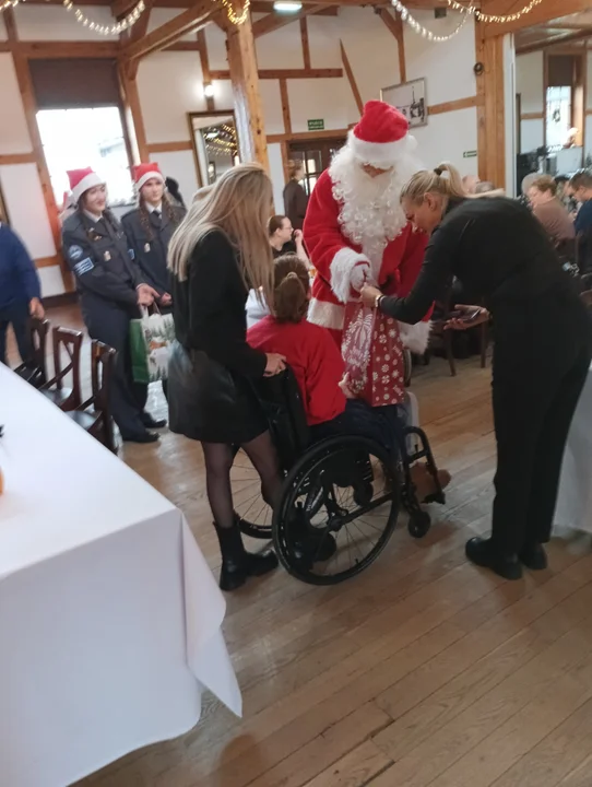 Jak co roku jednym z ważniejszych momentów spotkania była wizyta Mikołaja, który przyniósł niepełnosprawnym dzieciom paczki. W rolę "świętego" oraz jego pomocników wcielili się uczniowie Liceum Lotniczego w Dęblinie.