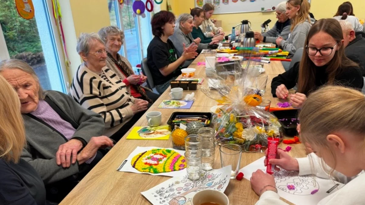 Spotkanie przebiegało w niezwykle serdecznej i rodzinnej atmosferze. W jego programie znalazły się m.in. wspólne dekorowanie pisanek, rozmowy przy stole oraz słodki poczęstunek. Najważniejsze jednak były chwile spędzone razem – pełne uśmiechu, życzliwości i wzruszających rozmów między młodszym i starszym pokoleniem.
