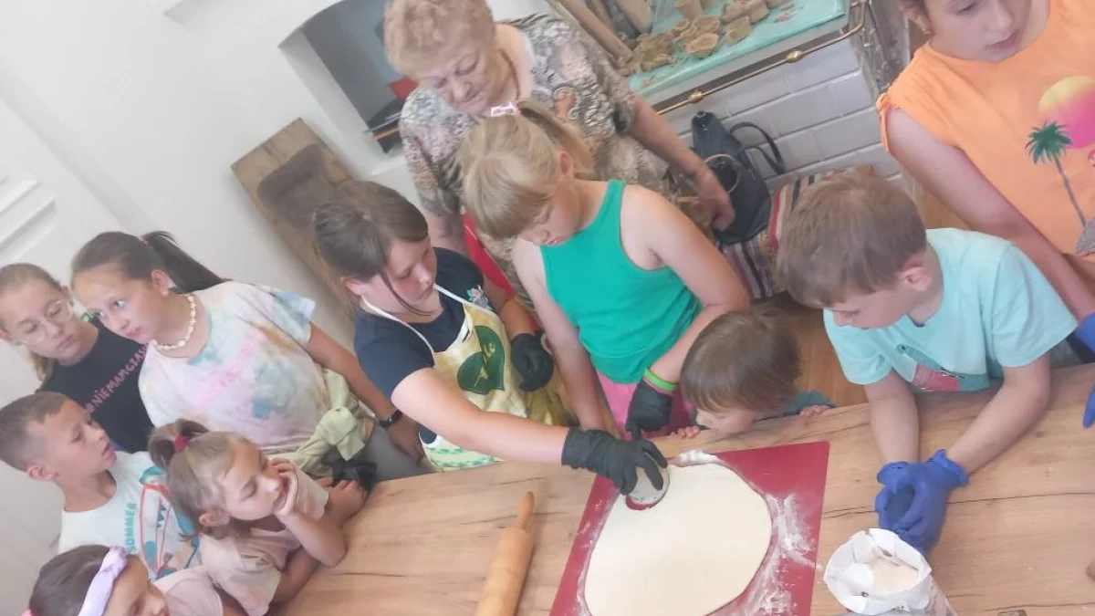 Nie wszystkie dzieci wyjeżdżają na zorganizowany, letni wypoczynek poza miejscem zamieszkania. A co to za wakacje przed telewizorem, czy komputerem? Nuda. O to, by najmłodsi mieszkańcy Gminy Baranów nie narzekali na brak atrakcji zadbali pracownicy miejscowego Gminnego Centrum Kultury. Zorganizowali im ciekawe zajęcia, a w każdym tygodniu inne atrakcje. Maluchy biorą udział w zajęciach plastycznych, językowych - szlifowały np. język angielski, oczywiście przez zabawę, bo taka nauka daje świetne rezultaty. Mają za sobą także m. in. wspólne wyjście do pizzerii, wycieczkę do Magicznych Ogrodów i parku rozrywki Majaland oraz warsztaty kulinarne, podczas których uczyły się trudnej, ale jakże przydatnej umiejętności lepienia pierogów. Najlepszy był jednak ostatni punkt warsztatów kulinarnych - wspólna konsumpcja.