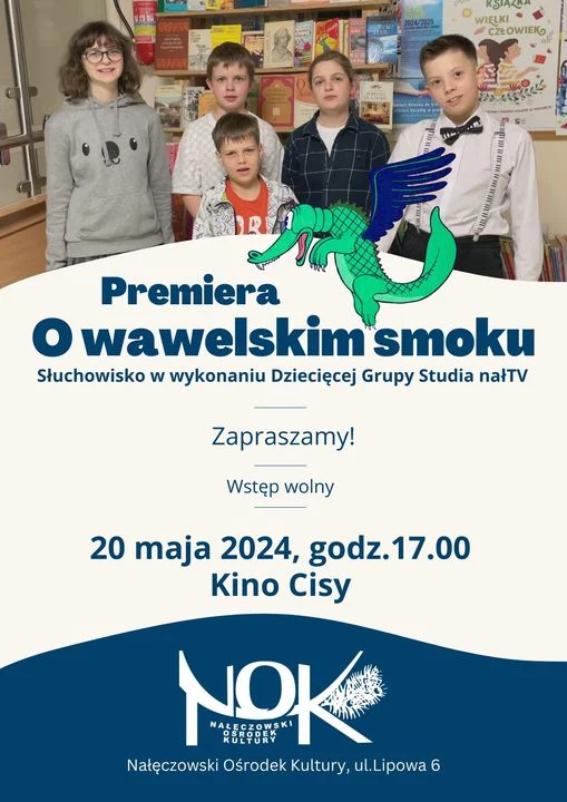W poniedziałek, 20 maja o godz. 17 w Nałęczowskim Ośrodku Kultury odbędzie się niezwykła premiera. Dziecięca Grupa Studia nałTV przygotowała słuchowisko "O wawelskim smoku". Wstęp jest bezpłatny.