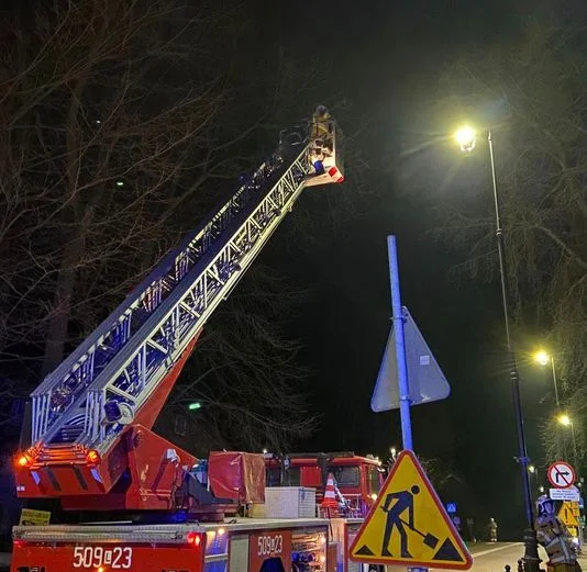Wszystko rozegrało się w piątek, 1 marca po godzinie 21 na ul. 1 Maja w Nałęczowie. Druhowie wykorzystali wysięgnik i uratowali kota.