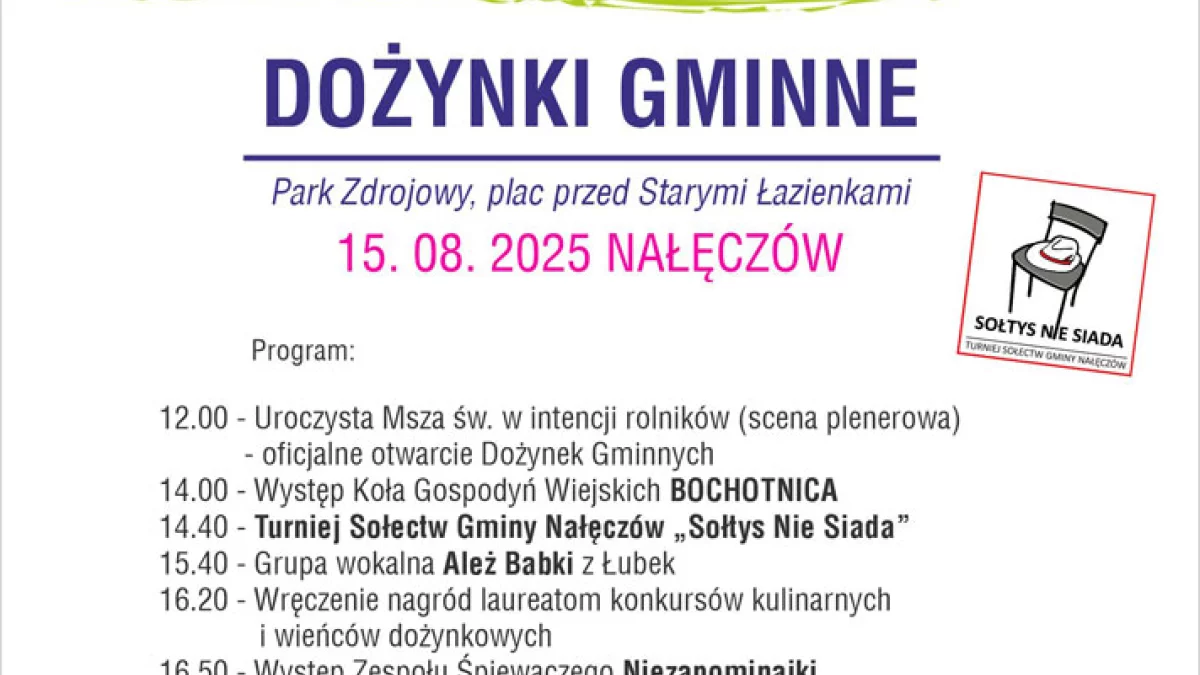 Po części liturgicznej przyjdzie czas na artystyczne i sportowe emocje. O 14:00 publiczność rozgrzeje występ Koła Gospodyń Wiejskich „Bochotnica”, a już 40 minut później ruszy Turniej Sołectw Gminy Nałęczów „Sołtys Nie Siada”, który w założeniu ma dostarczyć widzom wielu powodów do śmiechu i kibicowania swoim miejscowościom.