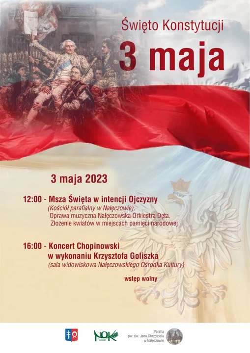Uroczystości rozpoczną się o godz. 12 od Mszy Świętej w intencji Ojczyzny, jaka zostanie odprawiona w Kościele Parafialnym w Nałęczowie.