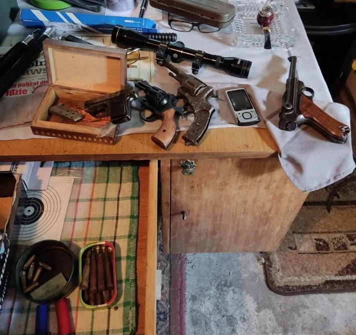 Właściciel posesji trafił do aresztu. Za nielegalne posiadanie broni grozi mu nawet 8 lat więzienia.