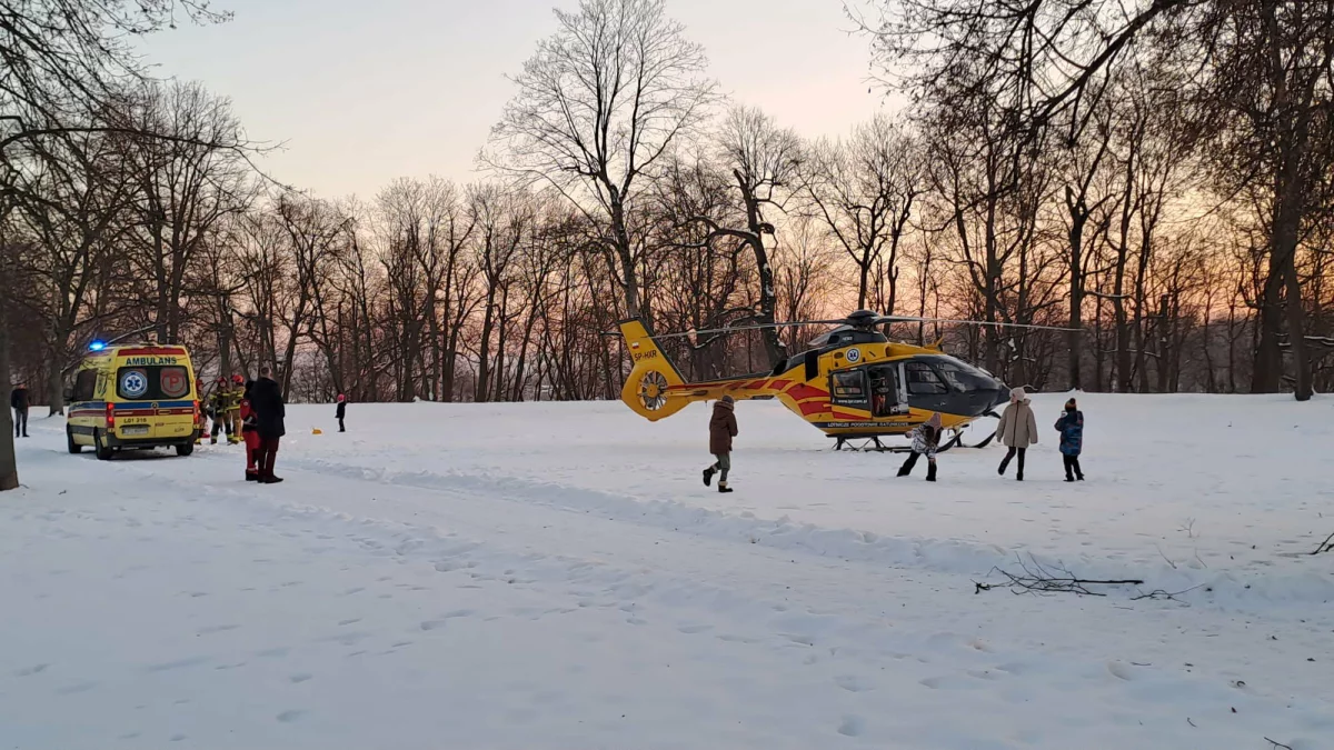 Górka, śnieg i sanki to dla dzieci zimą okazja do świetnej zabawy. Tak też miało być i w tym przypadku. Wszystko działo się w minioną środę 21 stycznia w Puławach. Po godz. 14:00 służby otrzymały zgłoszenie o wypadku, do jakiego doszło w Parku Czartoryskich. Chłopiec wybrał się tam z kolegami na sanki. Dzieci zjeżdżały z górki. W pewnym momencie 12-latek zjeżdżając na tzw. "jabłuszku" nagle zmienił tor jazdy i z impetem uderzył głową w drzewo. Całe zdarzenie widział spacerujący nieopodal mężczyzna. To właśnie on jako pierwszy podjął interwencję i zawiadomił służby ratunkowe. Wkrótce na miejscu była już straż pożarna i pogotowie, a nastolatkowi udzielana była pomoc. W wyniku uderzenia chłopiec stracił przytomność, odzyskał ją po kilku minutach. Załoga karetki zdecydowała jednak o zadysponowaniu śmigłowca Lotniczego Pogotowia Ratunkowego .
