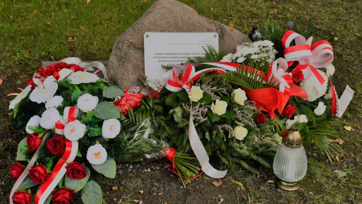 Historyk Pani Małgorzaty Daniłko w swoim artykulu tak opisuje te wydarzenia, 2 września 1939 r. w Gołębiu był piękny, słoneczny dzień. Choć wybuchła już II wojna światowa, mieszkańcy nie spodziewali się, że jej okrucieństwo dotknie ich tak szybko. Tego dnia nad Jezioro Nury, gdzie tradycyjnie suszono bieliznę, prześcieradła i chodniki, nadleciały niemieckie samoloty i zrzuciły bomby. W wyniku bombardowania zginęło prawdopodobnie 13 osób. Ich nazwiska, daty i godziny śmierci zostały odnotowane w Księdze Zgonów z 1939 r.
