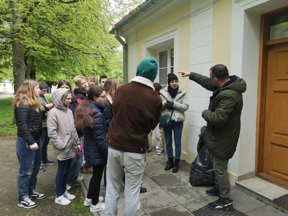 Uczniowie zaopatrzeni w rękawice i worki, które zapewnił ZUK, pod okiem nauczycieli i koordynatorów, wyruszyli na parkowe alejki w poszukiwaniu śmieci.