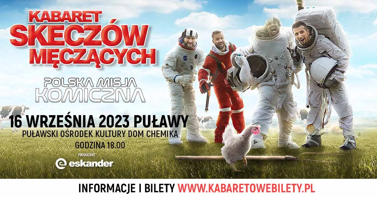 - Polska misja komiczna została powołana do eksploracji najodleglejszych zakątków duszy zwykłego Polaka. Bo to jacy jesteśmy to istny kosmos. Jako że wszystko najlepiej obserwuje się z dystansu, KSM pomoże wam unieść się ciut nad Ziemię. Będziecie się śmiać, dziwić, czasem oburzać. Zobaczycie siebie, swoich sąsiadów, nasze społeczeństwo we wszystkich jego barwach – zapowiada Kabaret Skeczów Męczących swój występ w mediach społecznościowych.