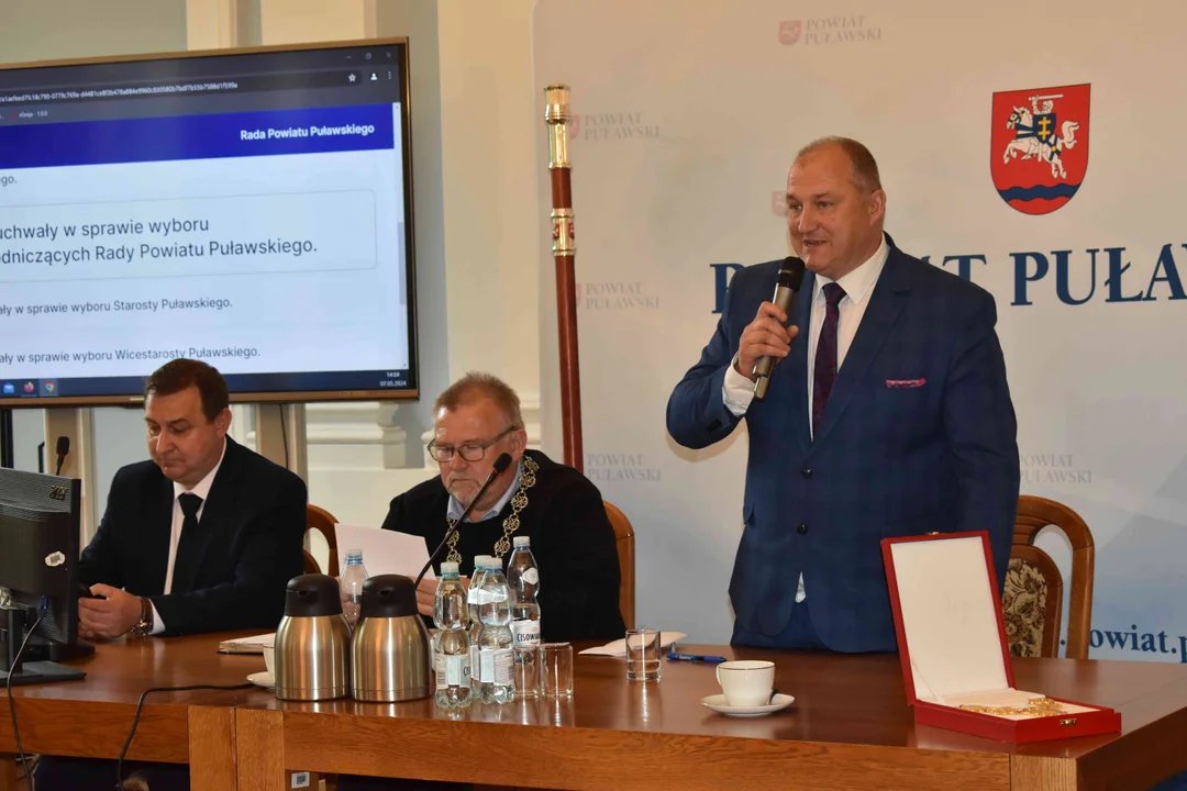 Decyzją komisarza wyborczego pierwsza sesja nowej Rady Powiatu Puławskiego obyła się we wtorek 7 maja. Punktualnie o godz. 12.00 obrady otworzył najstarszy radny - Wojciech Kuba (KO). Aby formalnościom stało się zadość, nowo wybrani radni najpierw odebrali zaświadczenia o wyborze i złożyli ślubowanie. Wtedy można było przejść do najważniejszego punktu spotkania - wyboru prezydium rady, starosty i jego zastępcy.