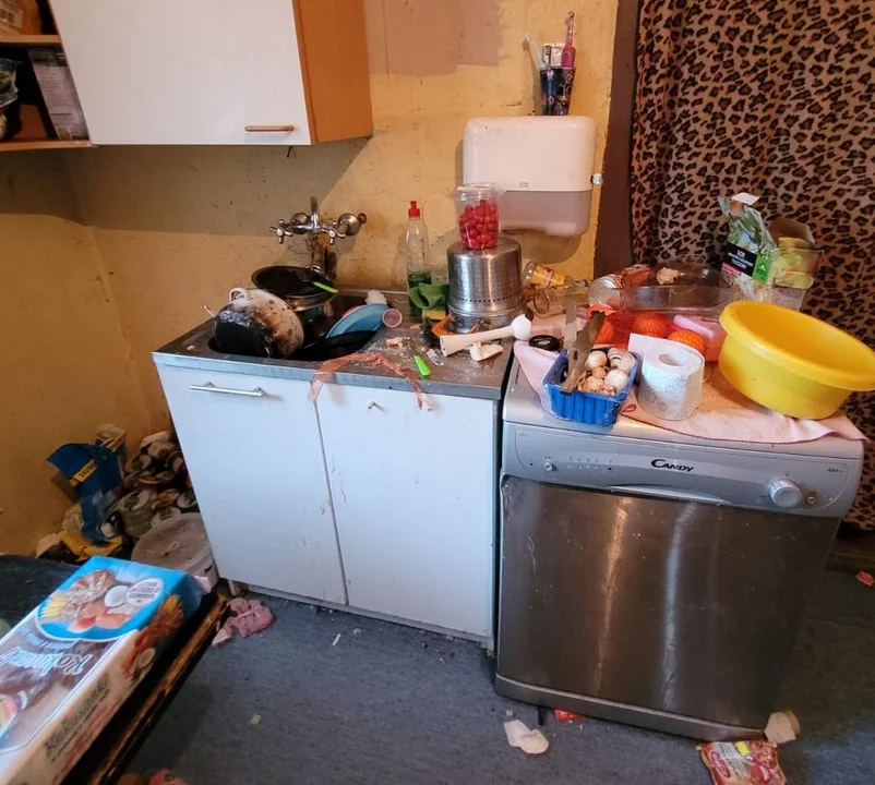 W domu panował bałagan, było brudno, w kilku miejscach leżały butelki i puszki po alkoholu oraz resztki zepsutego jedzenia.