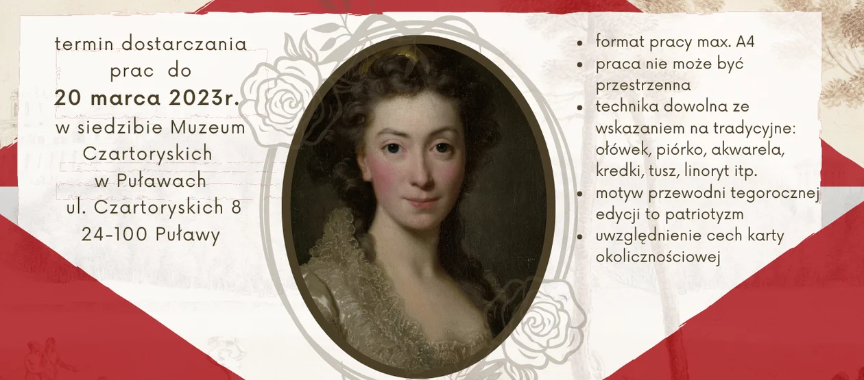 Izabela Czartoryska wraz z mężem Adamem Kazimierzem Czartoryskim przez wiele lat zamieszkała w puławskiej rezydencji, w której dziś funkcjonuje Muzeum ich imienia. W tym roku mija 278. rocznica urodzin Izabeli Czartoryskiej. Jak co roku Muzeum Czartoryskich wraz z urzędem miasta zaprasza uczniów szkół podstawowych i średnich do wzięcia udział w konkursie na kartkę urodzinową dla Księżnej. Format pracy to A4. Technika jest dowolna. Hasłem tegorocznej edycji konkursu jest patriotyzm. Własnoręcznie wykonane prace należy dostarczyć do siedziby Muzeum do 20 marca. W następnej kolejności kartki będą oceniane przez jury. Najlepsze zostaną nagrodzone.