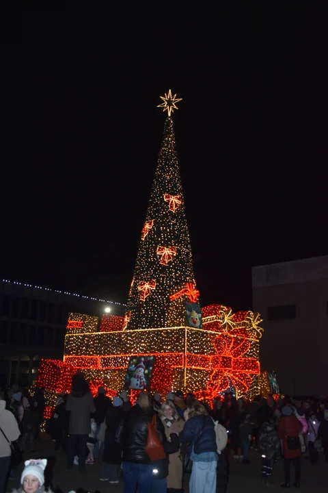 Montaż choinki trwał przez kilka dni. W same Mikołajki w mieście sporo się działo. Wiele osób wybrało się na miejsce po spektaklu Teatru KURTYNA „Patataj, pędź koniku… Bajka o wolności i odwadze”, który odbywał się w "Domu Chemika". Po krótkim powitaniu przez organizatorów, punktualnie po 17:15 odpalono iluminacje. Plac Chopina rozświetliły setki światełek, tworząc magiczną atmosferę. Chętni robili sobie zdjęcia. Choinka będzie zdobiła Plac Chopina przez kilka tygodni.