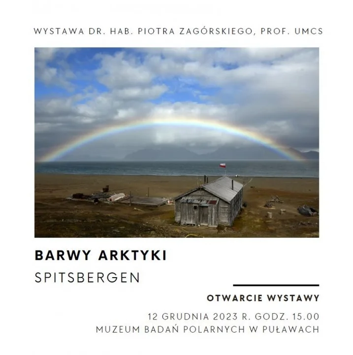 Rektor Uniwersytetu Marii Curie-Skłodowskiej w Lublinie prof. dr hab. Radosław Dobrowolski i Dyrektor Muzeum Badań Polarnych w Puławach dr Piotr Kondraciuk zapraszają na otwarcie wystawy prof. Piotra Zagórskiego pt. "Barwy Arktyki - Spitsbergen".