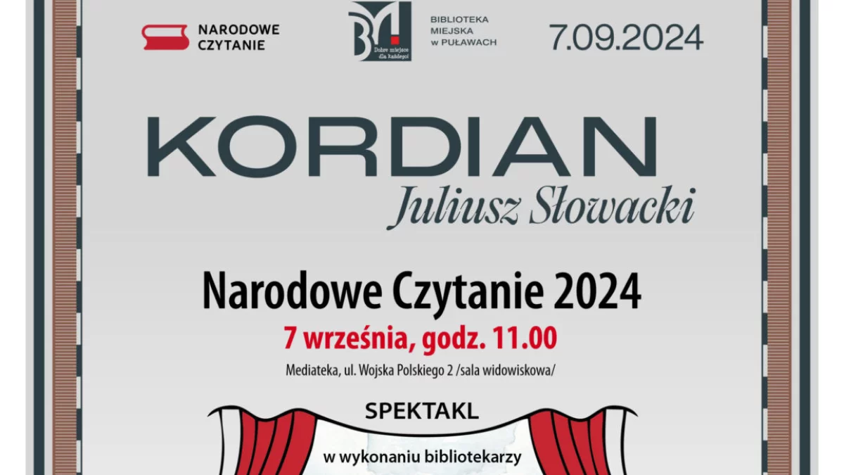 W sobotę o godz. 11:00 w Mediatece pracownicy książnicy wystąpią w spektaklu, który będzie oparty na fragmentach "Kordiana".