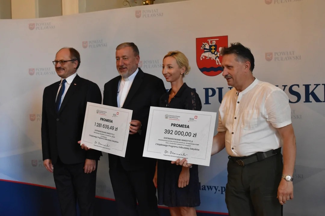 Listę samorządów, które mogą liczyć na finansowe wsparcie rządu w renowacji zabytkowych obiektów na swoim terenie opublikowano w miniony piatek. Znalazły się na niej także gminy z powiatu puławskiego, do których trafi na ten cel łącznie 17 mln zł. We środę (19 lipca) w puławskim starostwie odbyło się symboliczne przekazanie promes na przyznane dofinansowanie.