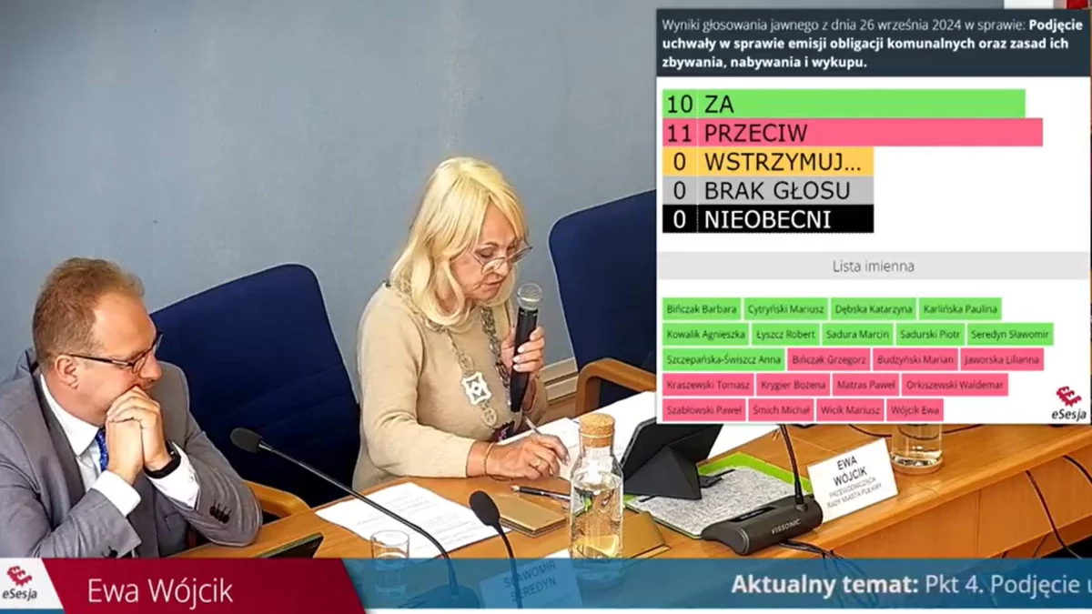 Zwracała uwagę na fakt, że emisję obligacji zaakceptowała poprzednia rada, głosując nad budżetem miasta na 2024 r.