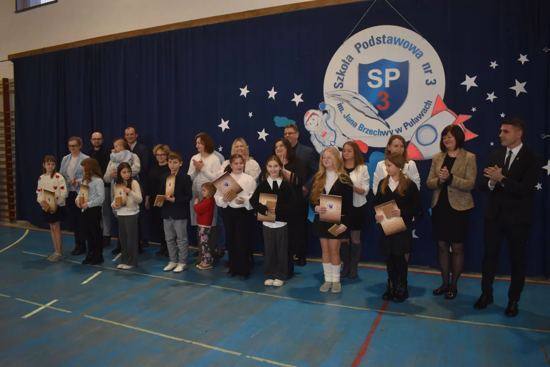 W pierwszym półroczu tego roku szkolnego średnią powyżej 4,75 uzyskało 96 uczniów. Nagrody zostały wręczone przez dyrektor SP nr 3 - Katarzynę Gregorczyk oraz m.in. przez Przewodniczącego Rady Miasta Puławy - Mariusza Wicika, Kierownik Wydziału Edukacji i Sportu - Agnieszkę Zamojską czy radnych - Sławomira Seredyna i Grzegorza Bińczaka.