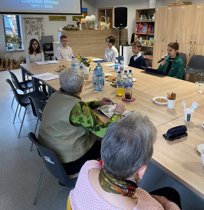 Zaprezentowali seniorom montaż słowno - muzyczny poświęcony jednemu z patronów 2024 roku - Czesławowi Miłoszowi.