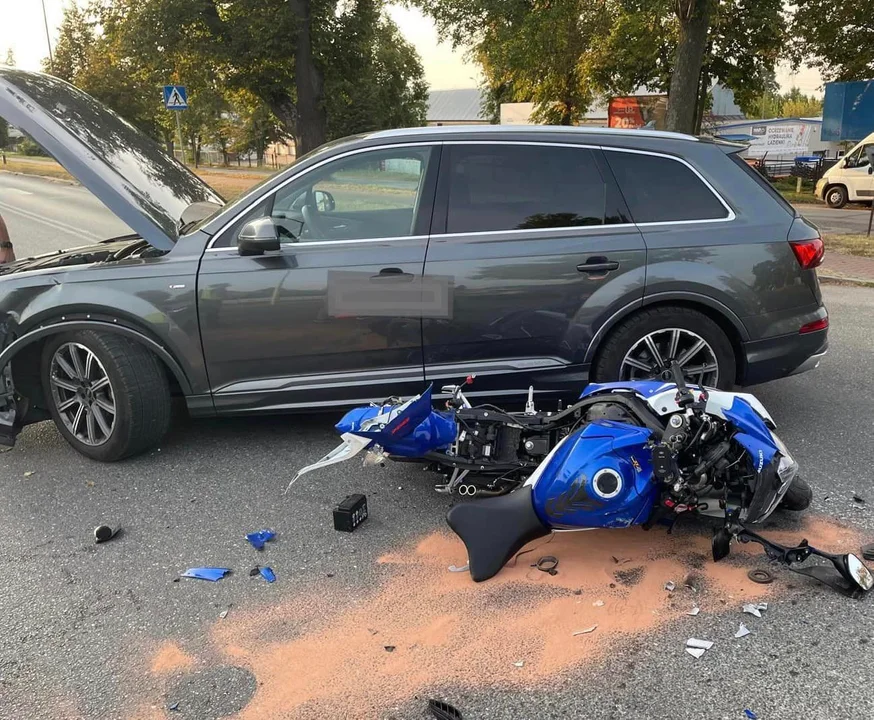 Kierujący motocyklem z obrażeniami ciała został przewieziony do szpitala. Ruch w tym miejscu jest utrudniony, dlatego warto wybrać alternatywną trasę.