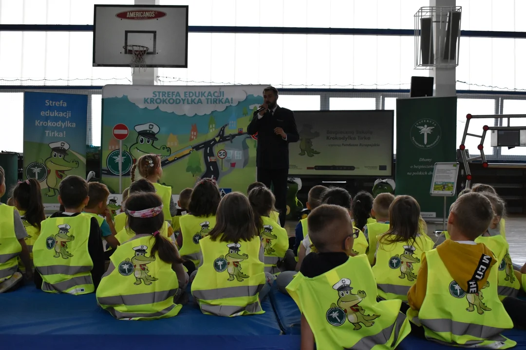 W środę szkolna sala gimnastyczna zamieniła się w mini miasteczko ruchu drogowego. Wszystko po to, by w praktyce pokazać dzieciom, jak zachowywać zasady bezpieczeństwa. Najpierw zerówkowicze wysłuchali pogadanki eksperta ITD, który opowiedział im na wstępie o pracy Inspekcji, tłumaczył jak należy zachować się np. przed przejściem dla pieszych, czy przypominał o tym, jak ważny jest kask i odblaski np. podczas jazdy na rowerze czy hulajnodze. Dzieci obejrzały także krótkie filmy edukacyjne, chętnie odpowiadały na pytania, a na koniec wspólnie bezbłędnie rozwiązały krzyżówkę.