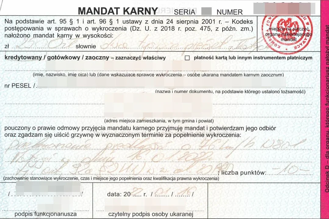 29-letni kierowca z powiatu ryckiego dostał mandat karny w kwocie 2,5 tys zł oraz 10 punktów karnych.
