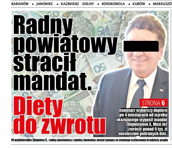 Chodzi o wydarzenia sprzed dwóch lat. W styczniu 2020 r. na posesji radnego Rady Powiatu Puławskiego Zbigniewa A. w Brześcach Kolonii zjawili się kontrolerzy PGE, a potem policja, podejrzewając, że może kraść prąd. Ten wszystkiemu zaprzeczał podnosząc, że sam już wcześniej dopatrzył się pewnych nieprawidłowości, które zgłaszał do dostawcy prądu. Efektem śledztwa był akt oskarżenia przeciwko Zbigniewowi A. Zgodnie z nim radny powiatu puławskiego miał dopuścić się kradzieży prądu poprzez wpięcie się dwoma przewodami bezpośrednio do linii energetycznej, z pominięciem urządzeń pomiarowych. W ten sposób miał pobierać energię przez ponad trzy lata (21 grudnia 2016 – 11 stycznia 2020). Straty PGE Dystrybucja to ponad 16,5 tys. kWh, wycenione przez spółkę na 9 tys. 824 zł i 56 gr. Proces ruszył w lutym ubiegłego roku. W maju Sąd Rejonowym w Puławach uznał go winnym i skazał na dziesięć miesięcy pozbawienia wolności w zawieszeniu na dwa lata oraz grzywnę w wysokości 10 tys. zł.