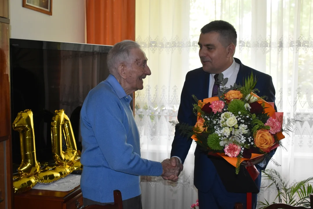 - Jestem bardzo szczęśliwy i dumny, że w takiej chwili mogę być z panem. Kłaniam się, składam wyrazy wdzięczności za to, co pan zapewne zrobił dla miasta, dla rodziny, dla naszej wspólnoty. Wszystkiego dobrego - mówił Paweł Maj i gratulował tak pięknego wieku.