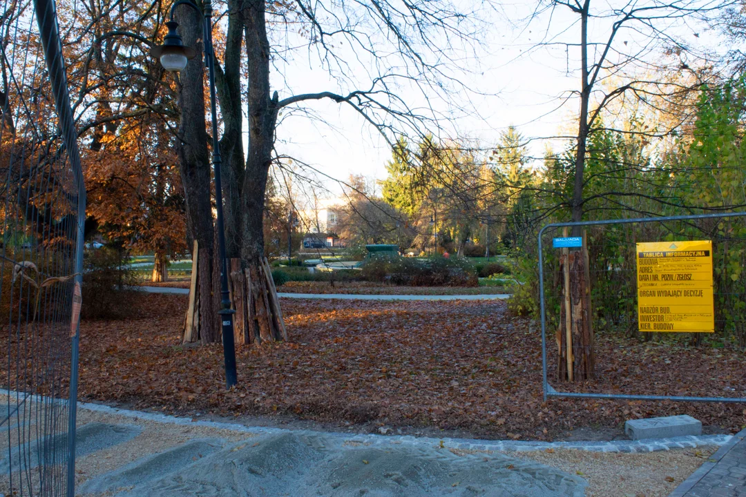 Teren skweru wciąż jest wygrodzony i w dalszym ciągu spacerujący nie mogą z niego korzystać, bo trwają prace.