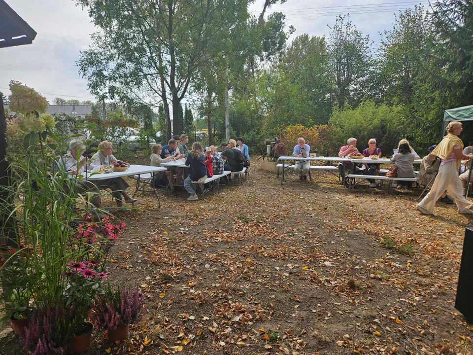 O godzinie 13:30 rozpoczął się kulminacyjny punkt dnia – piknik pod hasłem „Pardes znaczy Ogród. Mleko, miód i wino”. Jak przystało na wydarzenie inspirowane dawnym sztetlem, nie zabrakło smaków i zapachów, które przenosiły uczestników do świata przedwojennej żydowskiej kuchni i lokalnej tradycji.