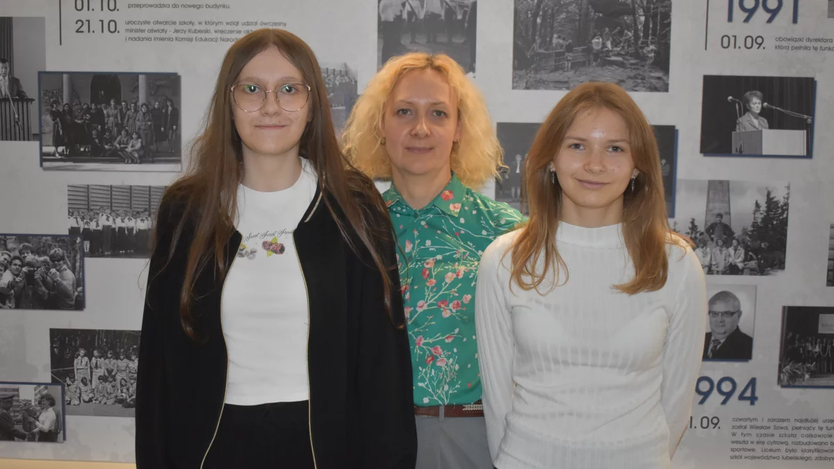 Autor: Dominik Kęsik | Opis: Od lewej Justyna Płowaś z 3LE, Dorota Zaroda - nauczycielka oraz Michalina Kucharska z 4LE