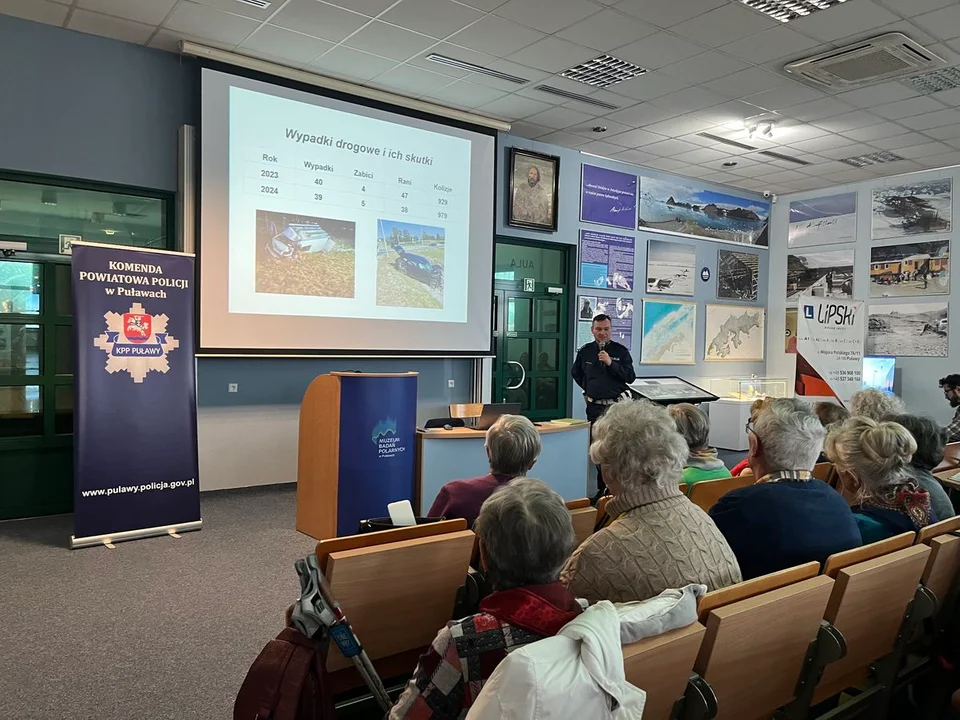 Puławscy policjanci chętnie angażują się w relacje ze społecznościami szkolnymi czy seniorskimi na terenie naszego powiatu, stąd wiele odbywają wiele spotkań z różnymi grupami społecznymi. Ostatnio mundurowi spotkali się ze słuchaczami puławskiego oddziału Uniwersytetu Trzeciego Wieku. Pogadanke dla nich zorganizowali w auli Muzeum badań Polarnych.