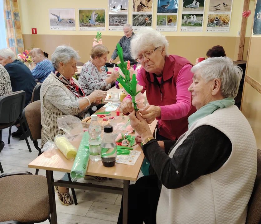 Członkowie Klubu chętnie uczestniczą w zajęciach - pichcą, wykonują przepiękne kwiaty i inne ozdoby z bibuły oraz śpiewają.