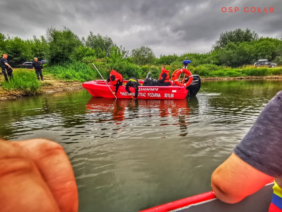W niedzielne przedpołudnie służby ratunkowe w powiecie postawił na nogi telefon z informacją, że w Wólce Gołębskiej w pobliżu tamy wojskowej znajduje się porzucone stanowisko wędkarskie, a na nim dwie zarzucone wędki, podbierak i butelki po alkoholu. W pobliżu stał natomiast zaparkowany samochód marki opel. Policjanci oraz strażacy rozpoczęli akcję poszukiwawczą w wodzie i na lądzie. W działania włączyli się strażacy z Puław z łodzią, okoliczni druhowie z OSP, specjalistyczna grupa płetwonurków, przewodnik z psem tropiącym oraz policyjny operator drona.
