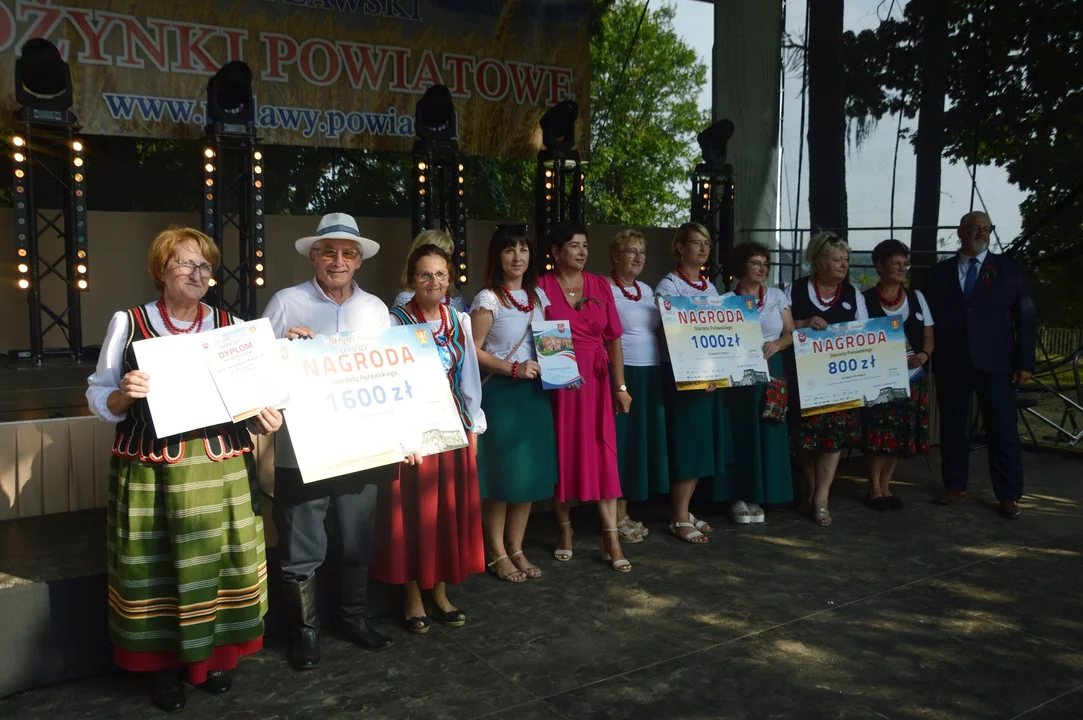 Na scenie zaprezentowały się poszczególne zespoły z powiatu wśród nich znaleźli się m.in. zespół „Promienie” z gminy Janowiec i „Pokolenie” z gminy Końskowola czy „Kalina” z gminy Markuszów. Za najładniejszy tradycyjny wieniec dożynkowy uznano KGW z Żyrzyna, a za współczesny KGW w Zabłociu. Wręczono także nagrody za najlepszy chleb i twórczość ludową.