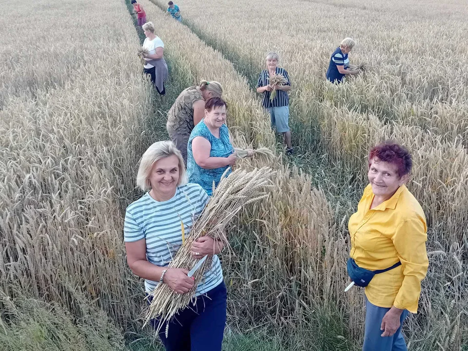 - Panowie pomagali nam przy zbiorach i spawaniu konstrukcji wieńca. Aktualnie potrzebne zboże, zioła i kwiaty mamy już wysuszone, codziennie przychodzi około 12 pań i składamy je w małe pączuszki. Przed nami są 2 konkursy, więc mamy ogrom pracy - tłumaczy Elżbieta Kozak.