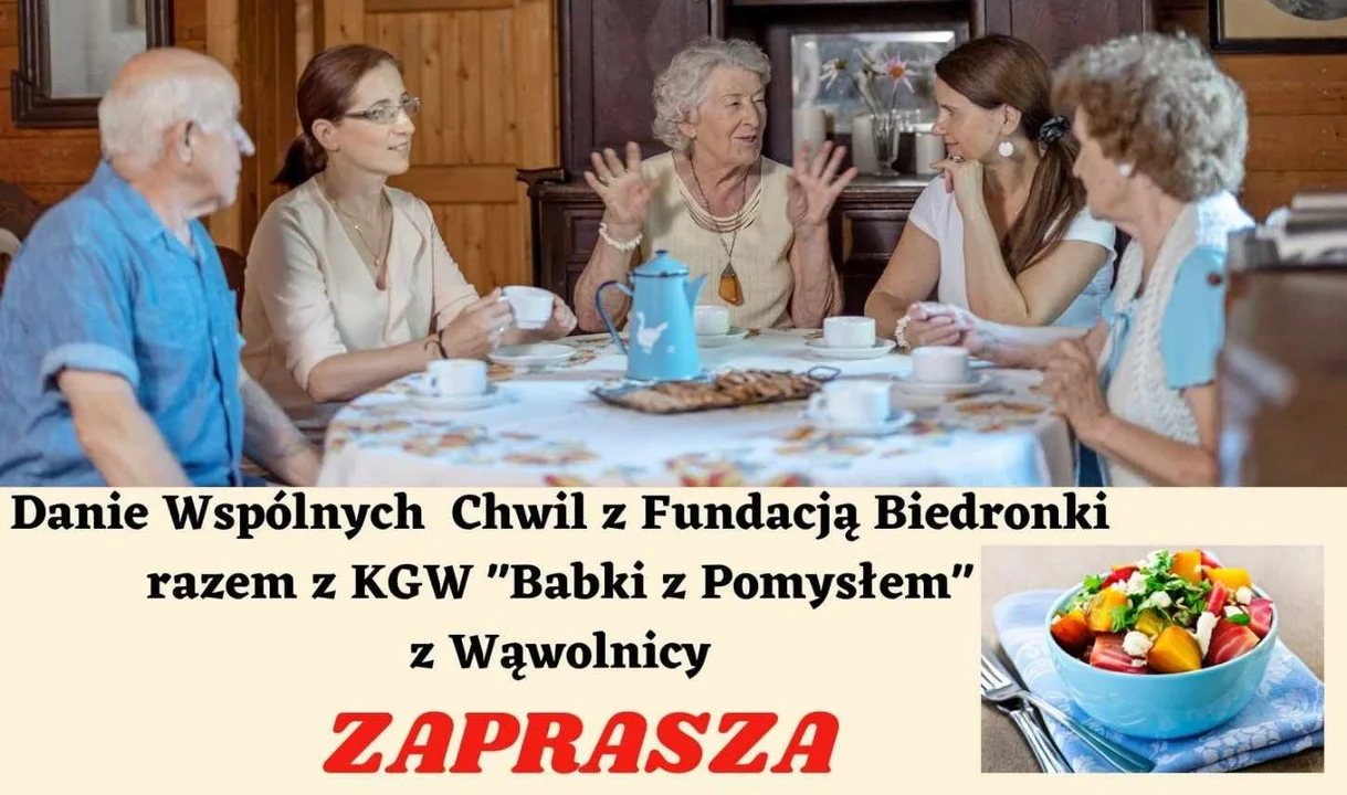 Panie z Koła Gospodyń Wiejskich "Babki z pomysłem" z Wąwolnicy działają aktywnie na rzecz swojej lokalnej społeczności. W ubiegłym roku nawiązały współpracę z Fundacją Biedronki, razem z którą organizowały spotkania pod hasłem "Danie wspólnych chwil" dla osób po 60. roku życia z terenu Wąwolnicy i okolic. Gospodynie zaopatrzone w produkty z supermarketu Biedronka szykowały dla seniorów pyszny obiad z deserem, a wszystko po to, aby zwłaszcza osoby samotne mogły wyjść z domu, w rodzinnej atmosferze zjeść posiłek i spotkać się z innymi, porozmawiać i oderwać się od szarej codzienności. Zachwyceni dotychczasowymi spotkaniami seniorzy czekali na kolejne. I się doczekali. Odbędzie się w sobotę 27 kwietnia o 15.00, ale tym razem nie w Gminnym Domu Kultury, a w remizie OSP w Wąwolnicy. Zapisy chętnych są prowadzone do 14 kwietnia pod nr. telefonu 512 651 026. Liczba miejsc niestety ograniczona.