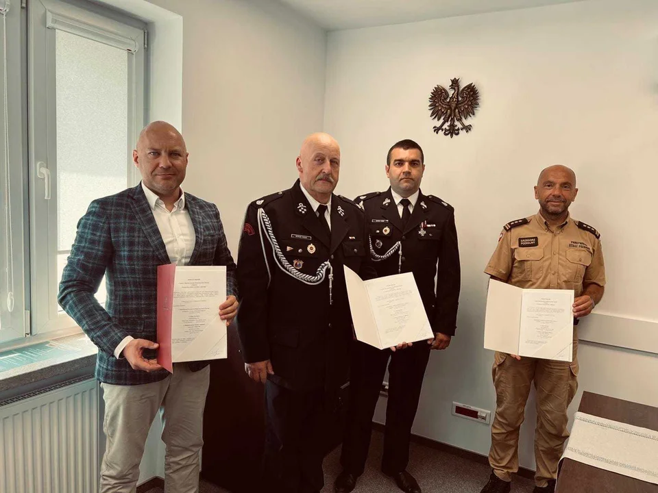 Dzięki temu ta część powiatu będzie lepiej zabezpieczona i gdy wydarzy się jakiś wypadek lub wybuchnie pożar, za pośrednictwem centralnego systemu powiadamiania strażacy z Rąblowa - jeśli akurat będą najbliżej zdarzenia - zostaną poinformowani o nim i skierowani na akcję. Ale, aby jednostka OSP mogła zostać włączona do KSRG musi spełnić kilka wymogów. Jednym z nich jest posiadanie co najmniej jednego średniego lub ciężkiego samochód ratowniczo – gaśniczego. Ten warunek rąblowska straż już spełnia. W czerwcu dzięki wsparciu gminy i darczyńców wzbogaciła się o mercedesa atego. Wóz kosztował 700 tys. zł. Kolejny krok w stronę wprowadzenia jednostki do systemu już wykonano. 16 lipca w Urzędzie Gminy w Wąwolnicy miało miejsce podpisanie trójstronnego porozumienia w tej sprawie. Dokument podpisali Komendant Powiatowy Państwowej Straży Pożarnej w Puławach st. bryg. Grzegorz Podhajny, Wójt Gminy Wąwolnica Marcin Łaguna, a w imieniu OSP Rąblów Prezes Mariusz Rodzik w asyście naczelnika Marcina Turka.