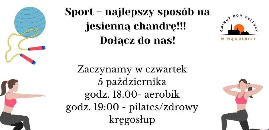 To nowa propozycja GDK będąca odpowiedzią na zapotrzebowanie mieszkańców. Nowa dyrektor placówki Dorota Chudy po objęciu stanowiska w specjalnie przygotowanej ankiecie zapytała ich, jakich zajęć w domu kultury oczekiwaliby. Wąwolniczanie i mieszkańcy okolicznych miejscowości, którzy wypełnili ankietę najczęściej wskazywali właśnie zajęcia sportowe. Dlatego pojawiła się propozycja aerobiku i pilatesu. Na razie tygodniowo zaplanowano 3 godziny tego typu zajęć. Będą odbywały się w siedzibie Gminnego Domu Kultury w Wąwolnicy we wtorki (18.00 aerobic) oraz w czwartki - o 18.00 godzina aerobicu, a od 19.00 do 20.00 pilates/zdrowy kręgosłup.