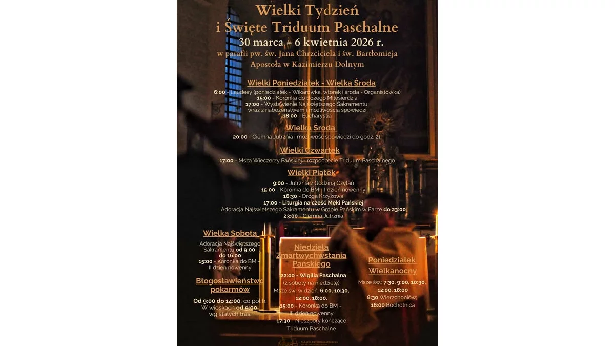 W Wielką Środę o godz. 20.00 zaplanowano Ciemną Jutrznię oraz dodatkową możliwość skorzystania z sakramentu pokuty.